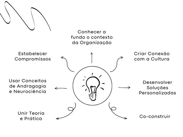 Iniciamos com uma escuta ativa para entender os desafios, expectativas e objetivos do cliente. A partir desse diagnóstico, cocriamos soluções sob medida, que integram conteúdos e metodologias que promovem o desenvolvimento de competências, o fortalecimento das relações e a construção de ambientes mais colaborativos e produtivos.